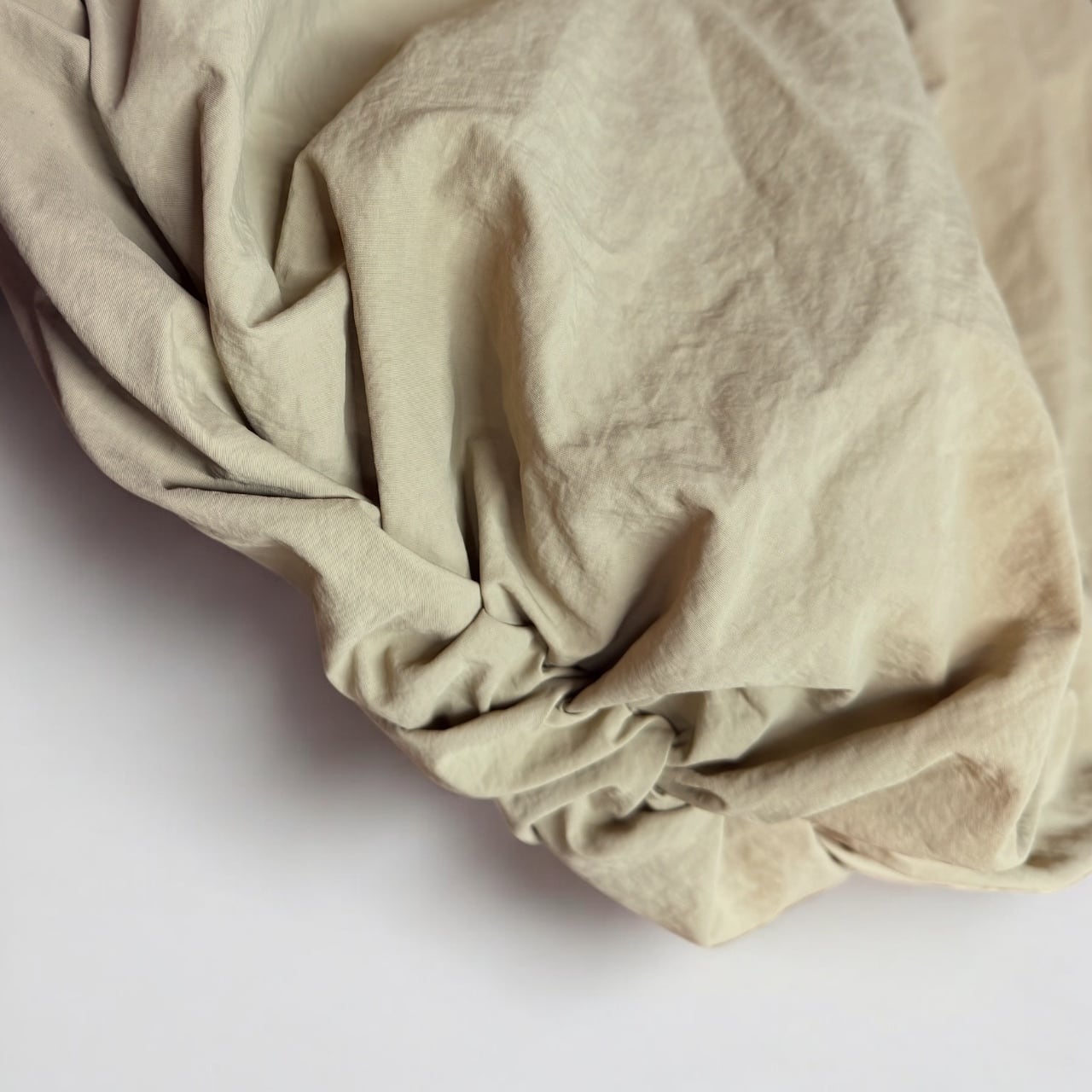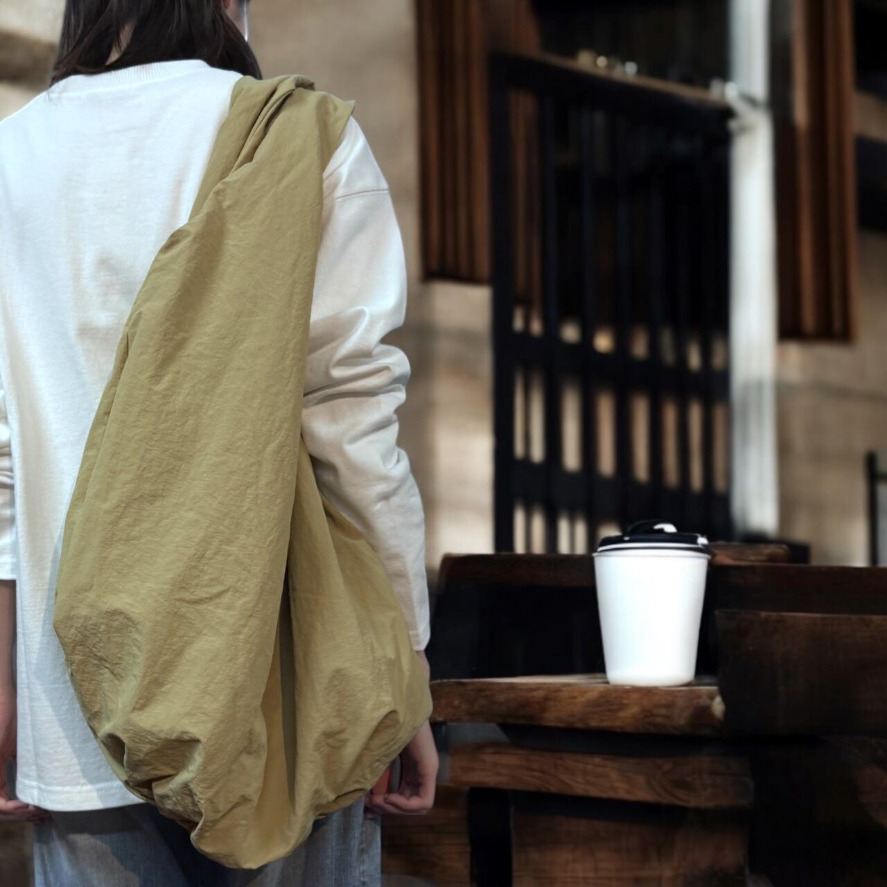 表情のあるギャザー加工が、シンプルな装いにも動きをプラス。ゆったりとしたサイズ感で、お財布・ポーチ・ボトルなど日常の必需品をしっかり収納。内側にはポケット付きで、小物の整理も安心です。