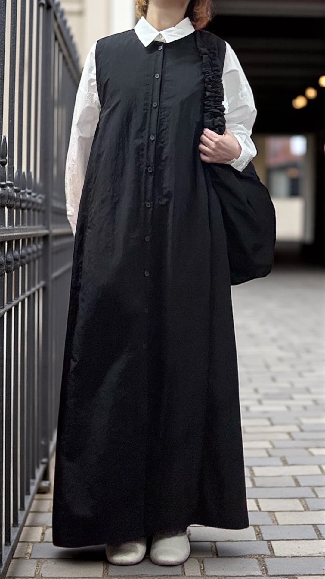 # フロントボタンオーバーフィットロングワンピース