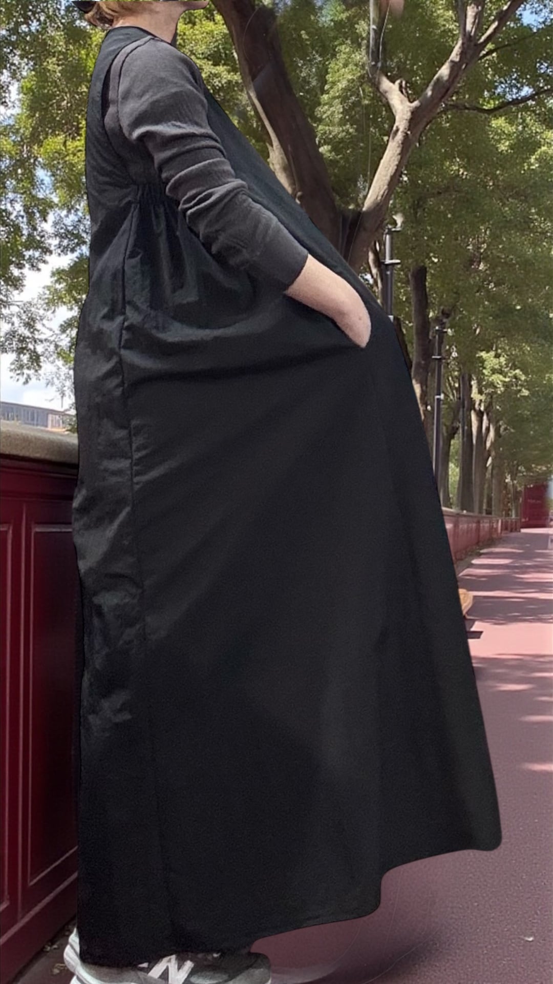 ポケット付きの実用性と、マタニティ対応も可能なゆとりのある設計が魅力です。