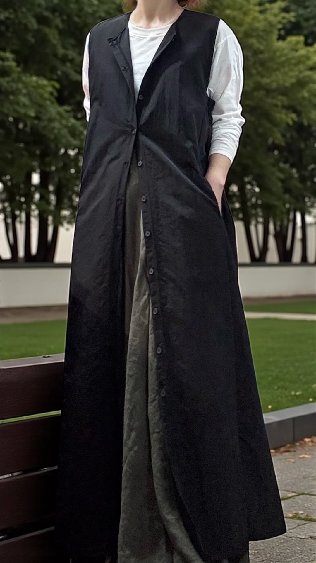 軽やかでナチュラルな揺れ感が美しい、フロントボタンデザインのオーバーフィットロングワンピース。