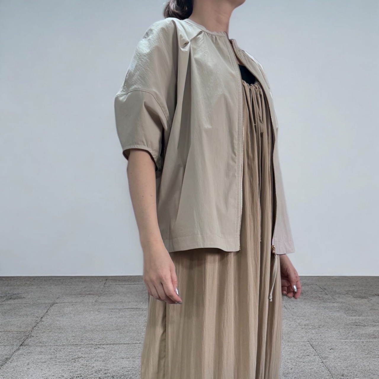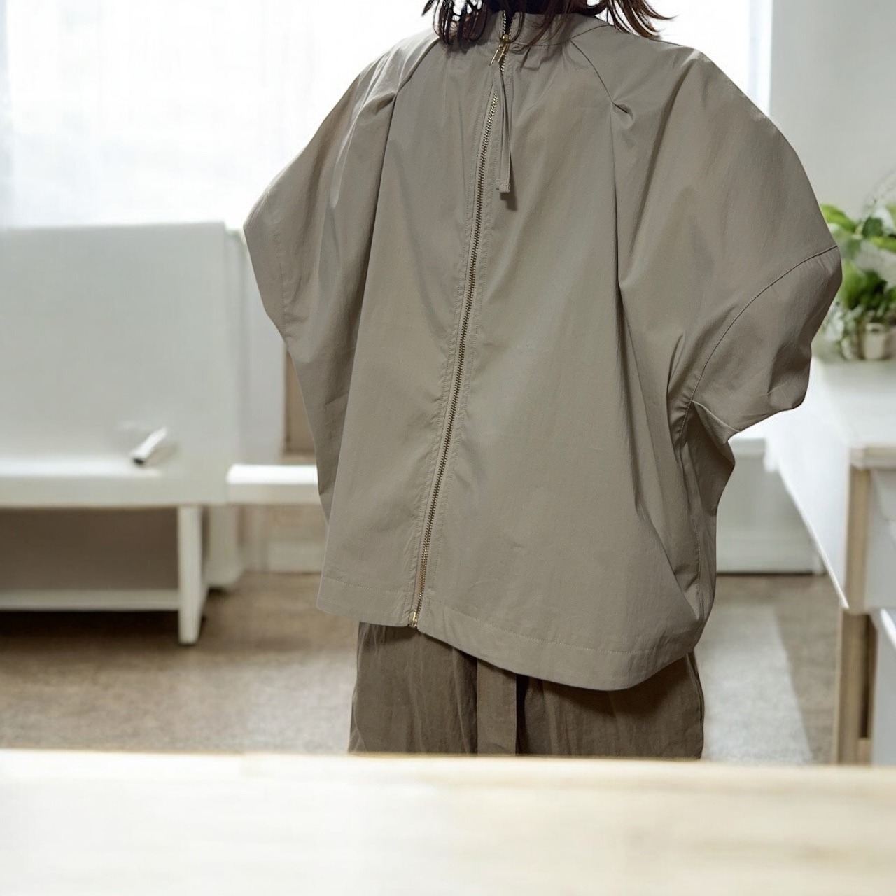 ふんわりと丸みを帯びたコクーン袖が印象的な、前後2WAY仕様のZIPブラウス。