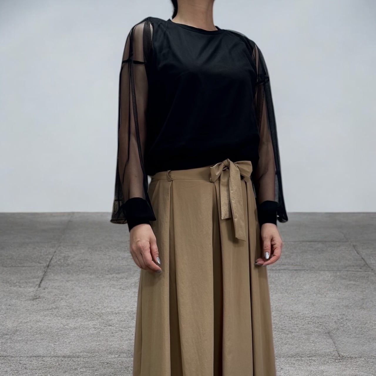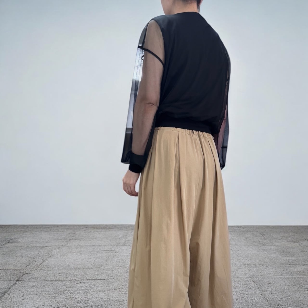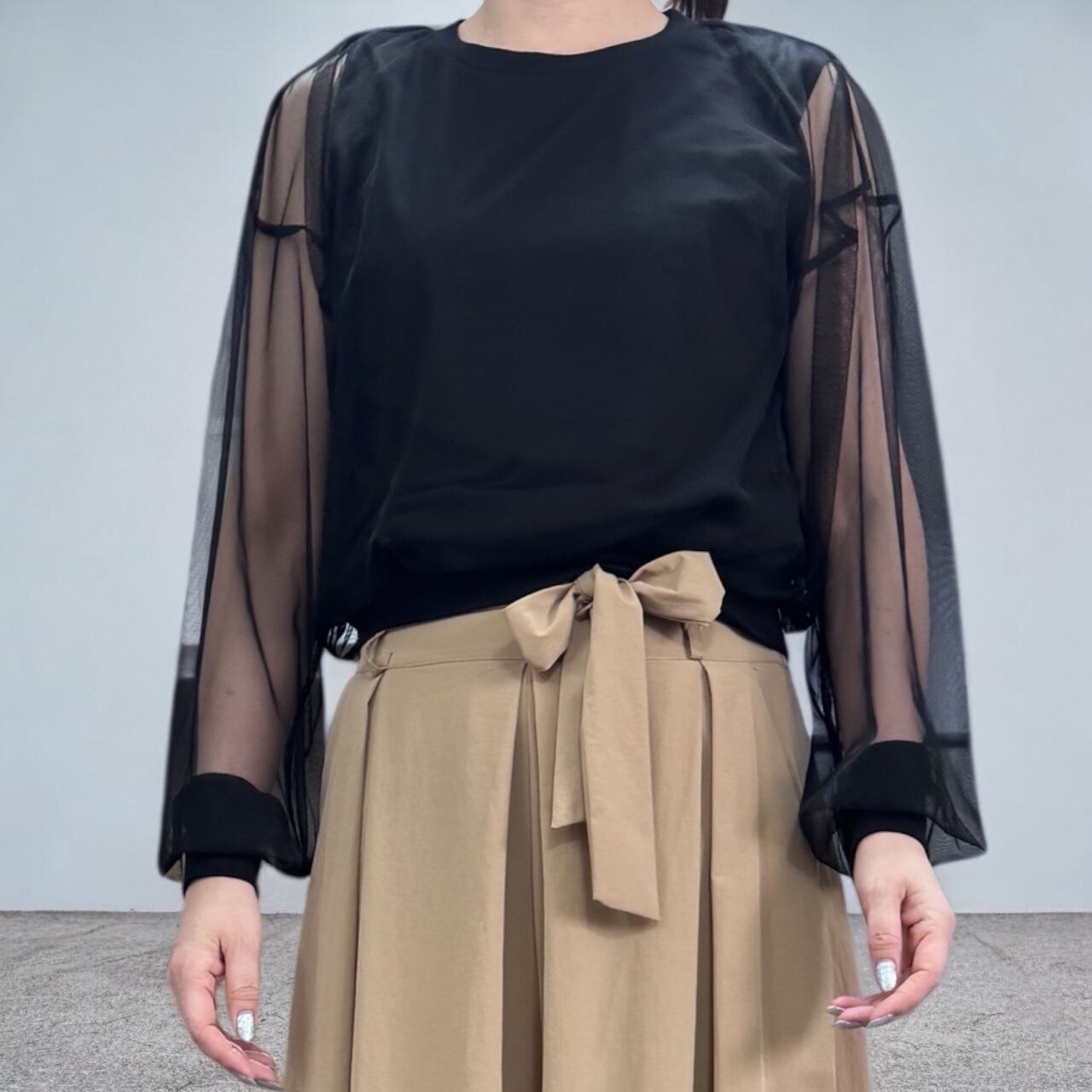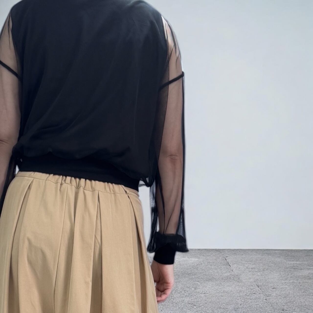 トレンド感満載のチュールレイヤードプルオーバーは、上品さと大人の魅力を兼ね備えた一枚。軽やかな印象を与える柔らかいカットソーチュールが重ねられたデザインで、内側には伸縮性のあるタンクトップがドッキングしています。これにより、着心地の良さを保ちながら、スタイリッシュなコーディネートを実現します!