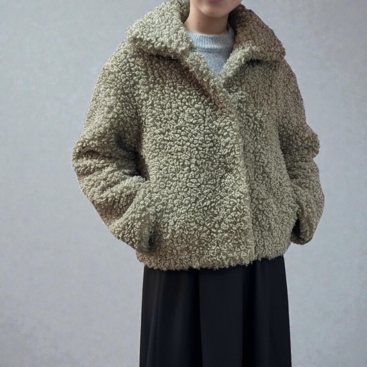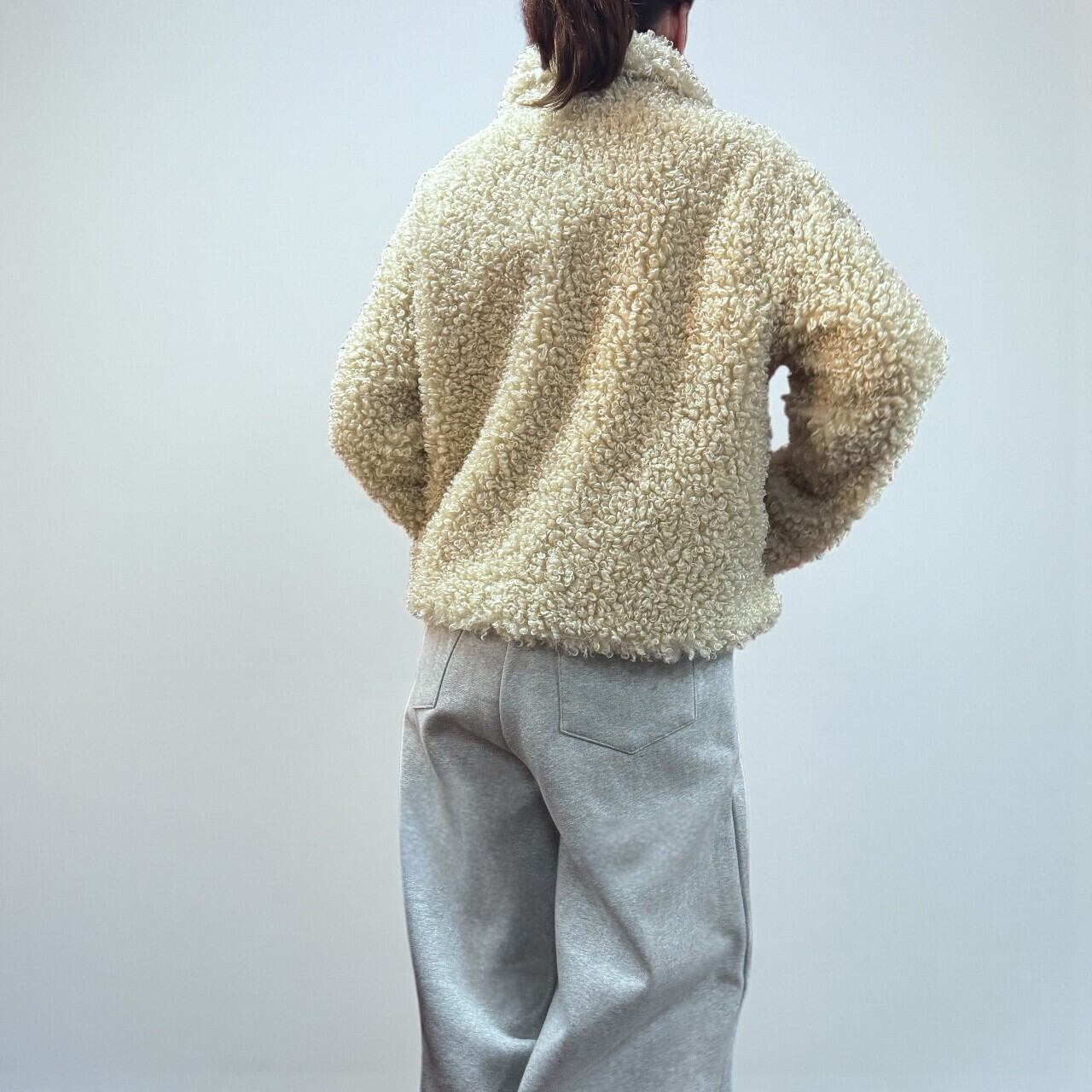 表情のあるプードルボア素材を使用したショート丈ブルゾン。
