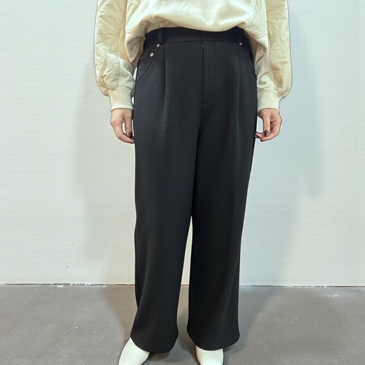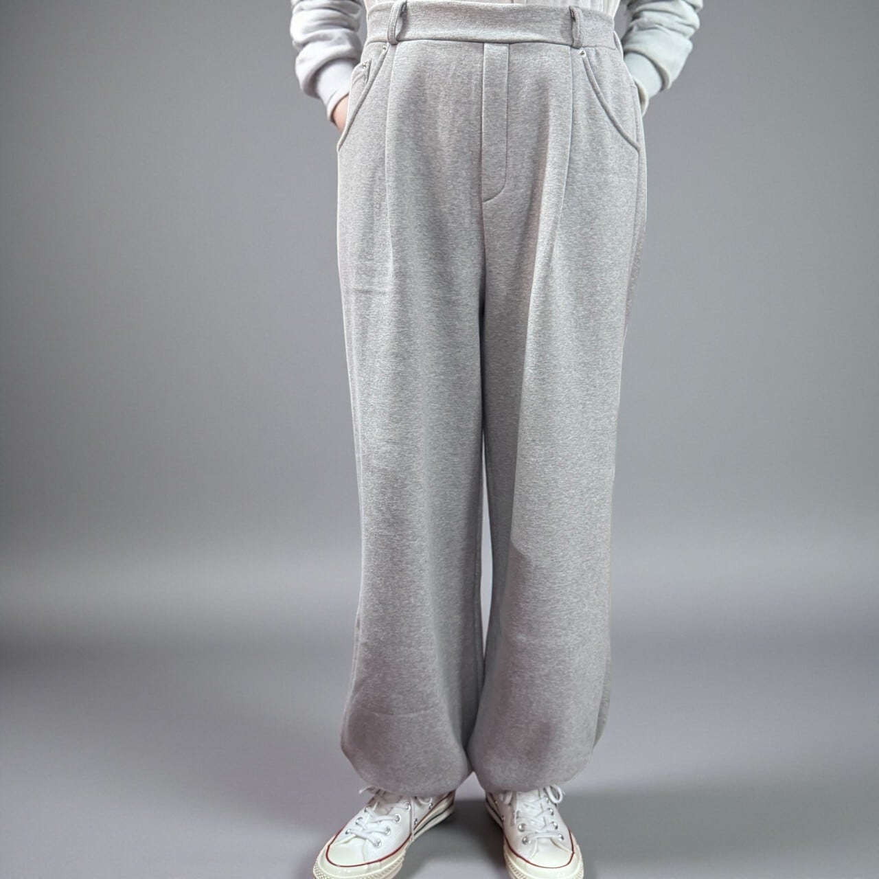 リベット裏起毛タックパンツ/きちんと感も叶える大人のスウェットパンツ