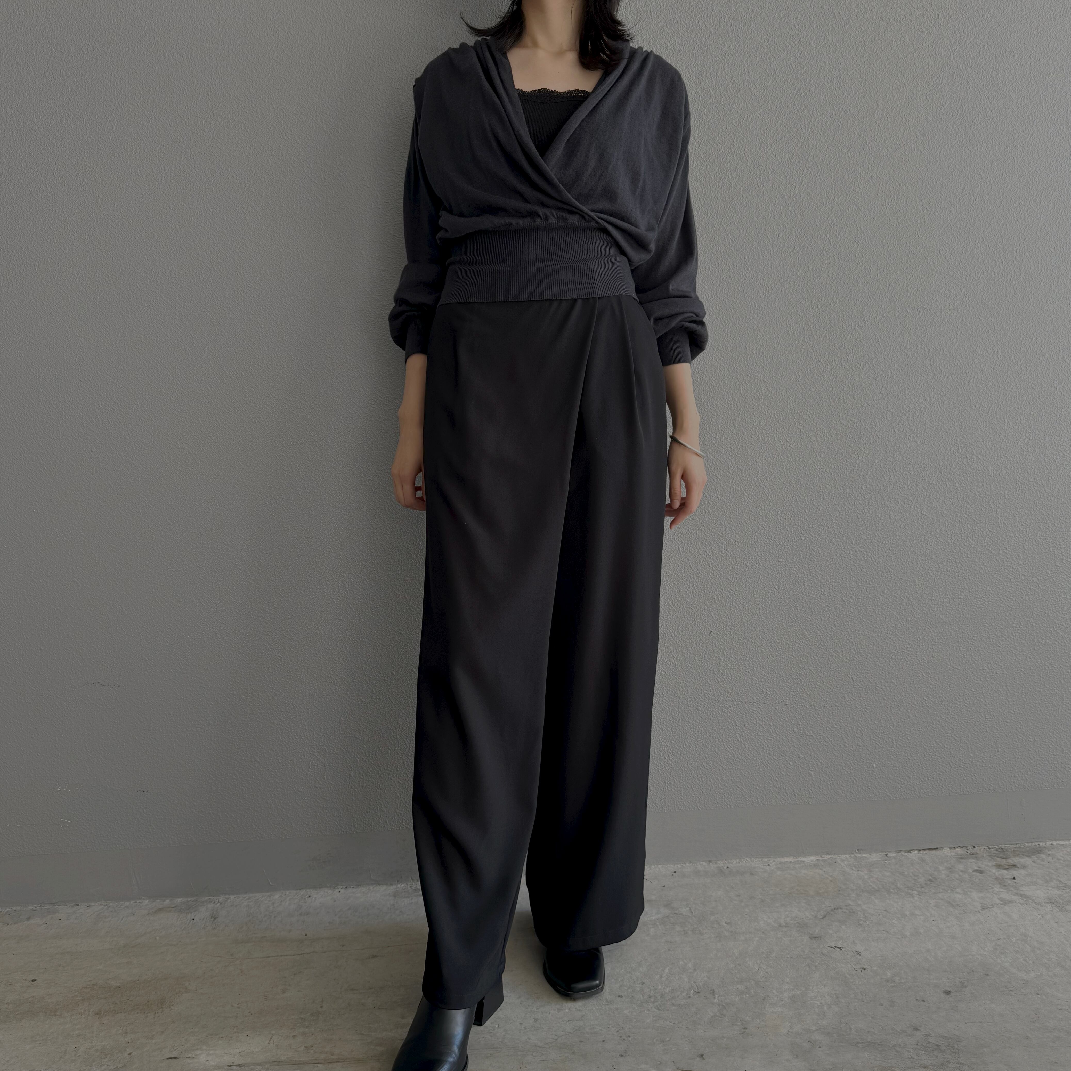 ウエストに沿ったリブデザインがスタイルアップを叶える、上品なカシュクールニット。